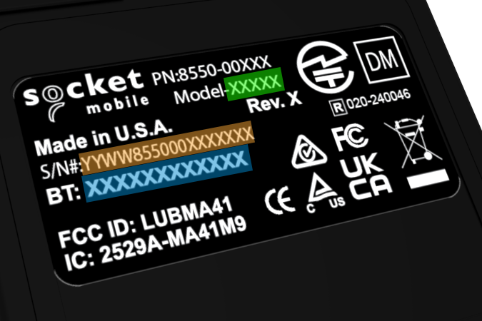 Locate your scanner's model number, serial number (S/N) and Bluetooth Address.
